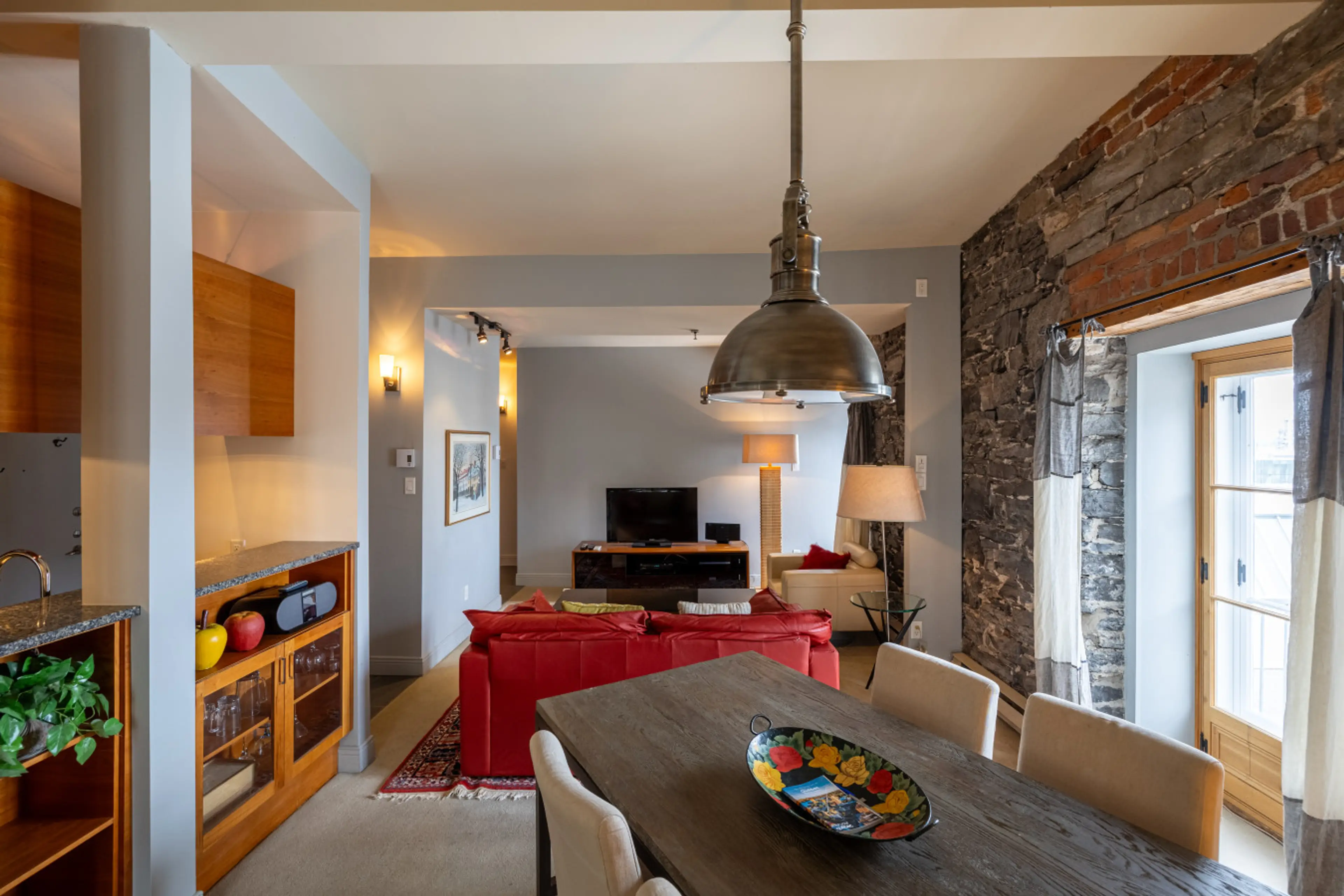 Spacieux condo récemment rénové situé dans une petite rue pittoresque du Vieux-Port. A sa décoration raffinée s'ajoute la chaleur des murs en pierre, des briques et des poutres apparentes. Secteur paisible. Accès à une terrasse commune sur le toit À proximité : Marché du Vieux-Port Gare intermodale ...